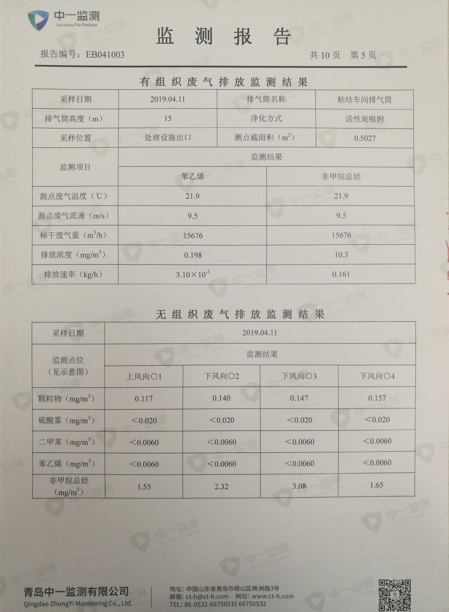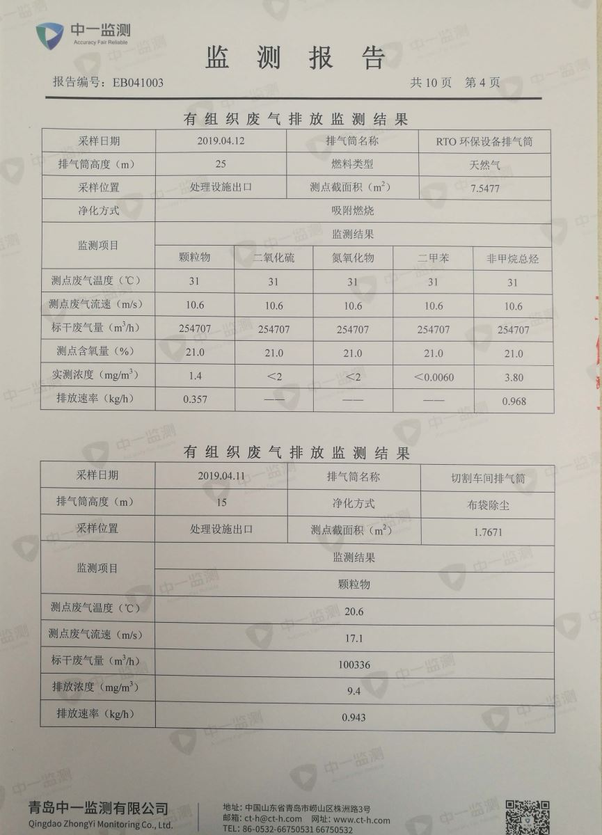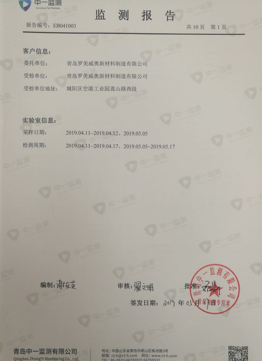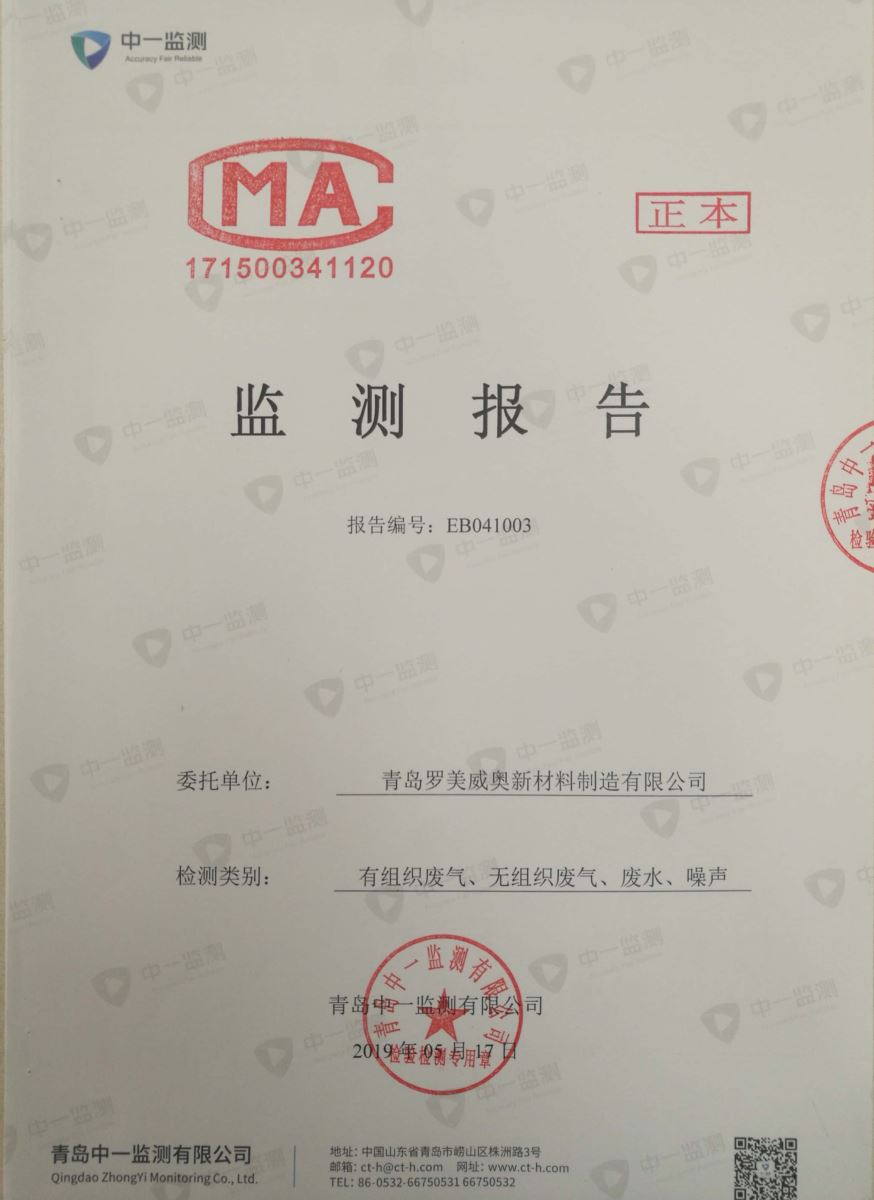 青岛罗美威奥新材料制造有限公司监测报告(2019年度)