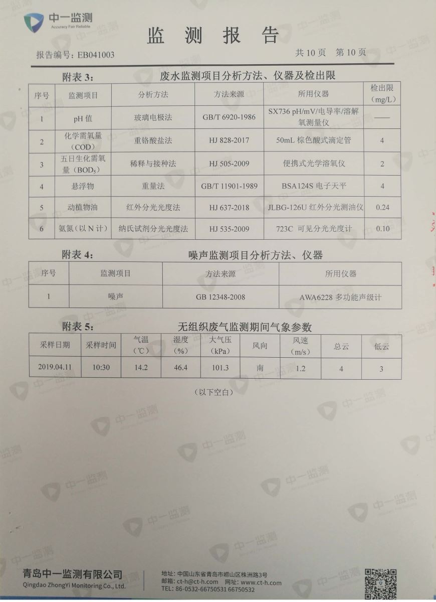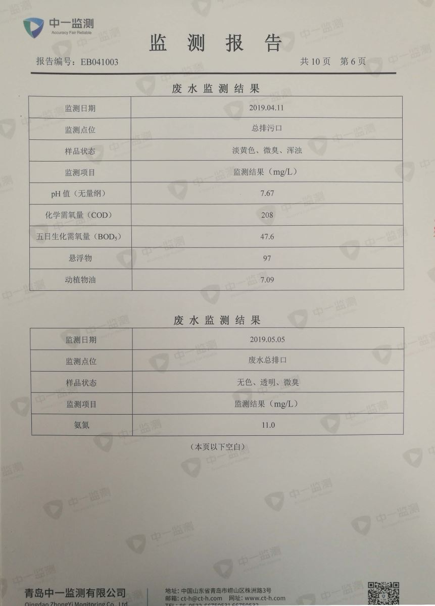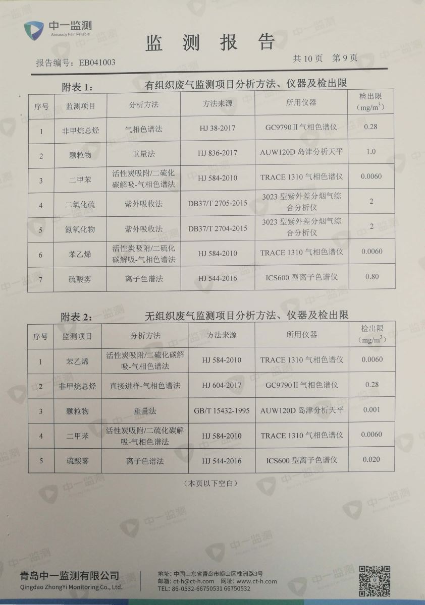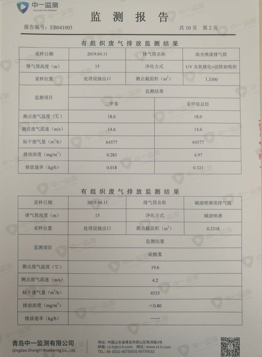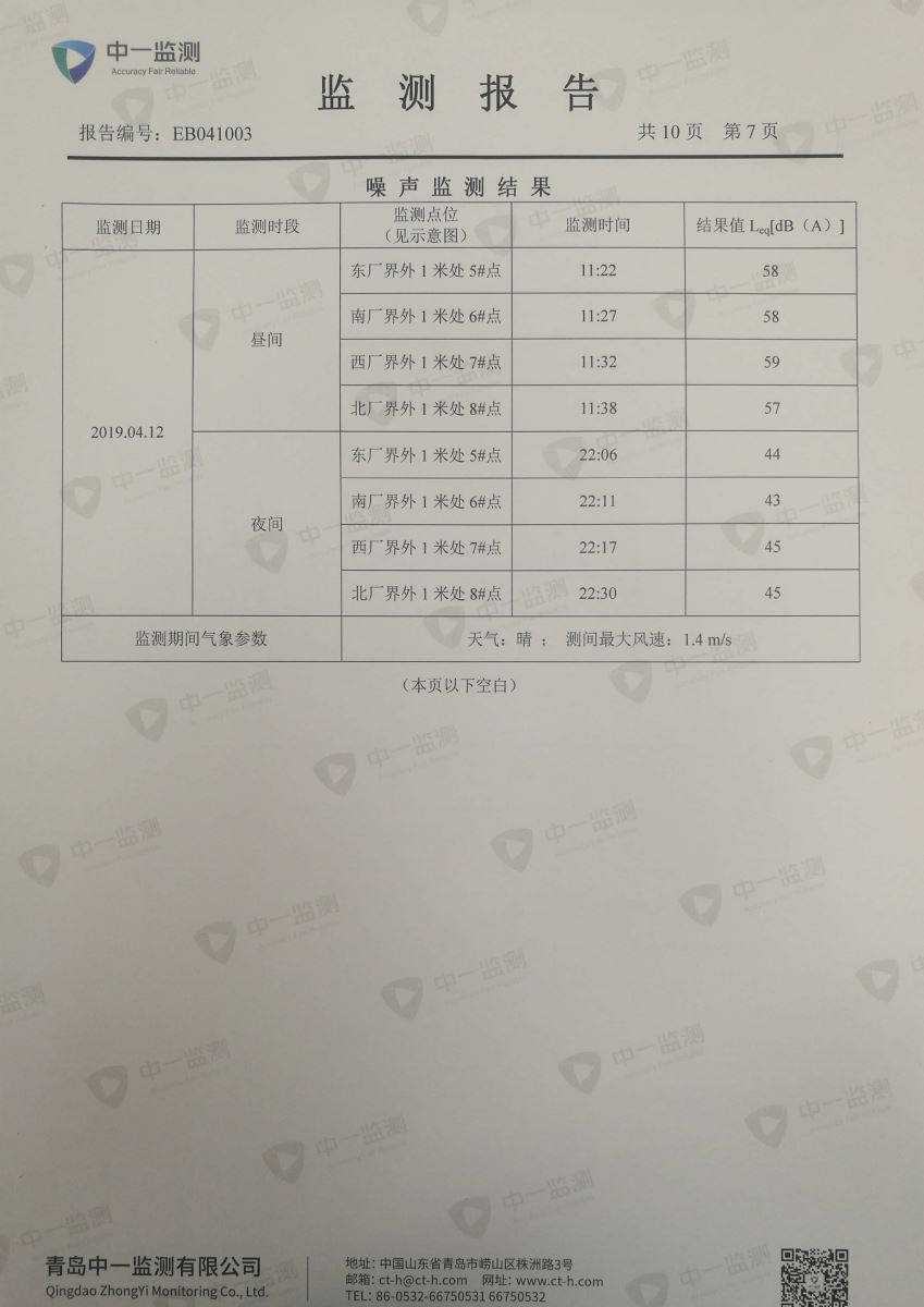 青岛罗美威奥新材料制造有限公司监测报告(2019年度)